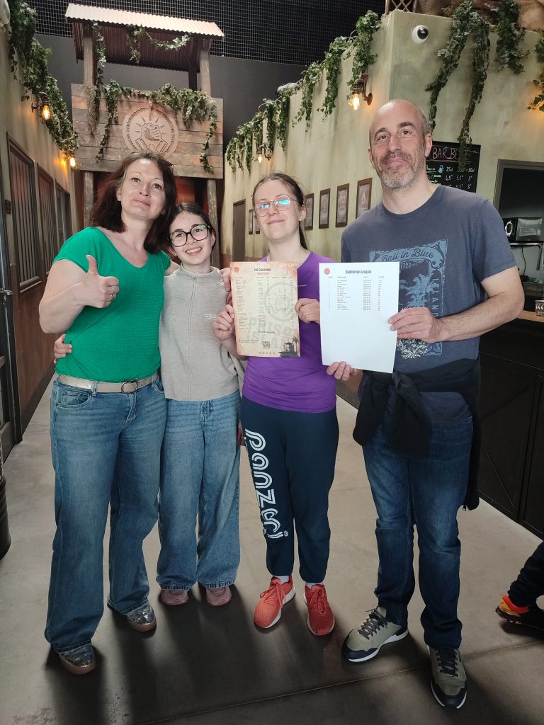 Vincent en pleine réflexion et sa coéquipière qui a le V de la victoire 🙂