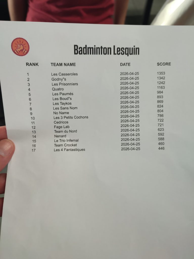 Les résultats du tournoi dans la section https://badmintonlesquin.fr/classement-joueurses/